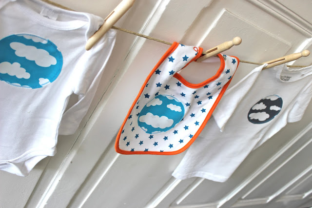 Heute habe ich im Lädeli ein bisschen Wäsche gehängt .... Shirts, Lätzli & Body mit ein bisschen "Wolkenliebe", welche es ab morgen im Lädeli zu kaufen gibt.