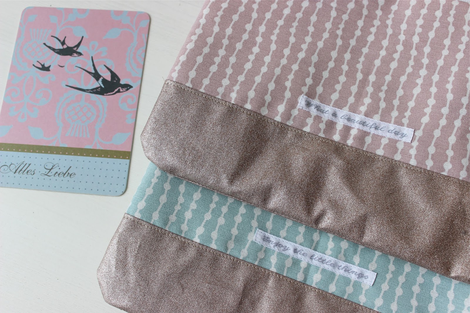 Den grauen Sonntagmorgen habe ich zum Vernähen von diesen bereits zugeschnittenen Täschchen genutzt. Sie sind mit Vlies gefüttert, eine kleine Botschaft ziert die Vorderseite und sogar ein ipad hat grad schön darin Platz.