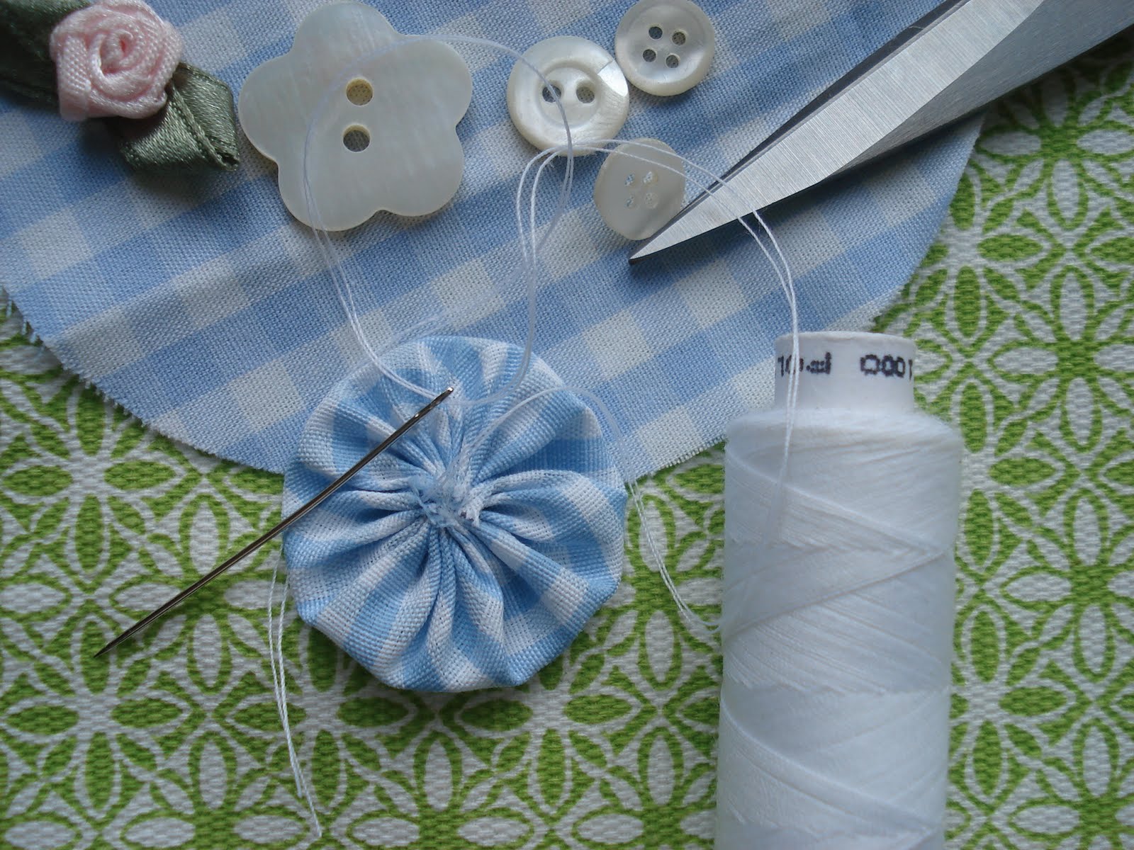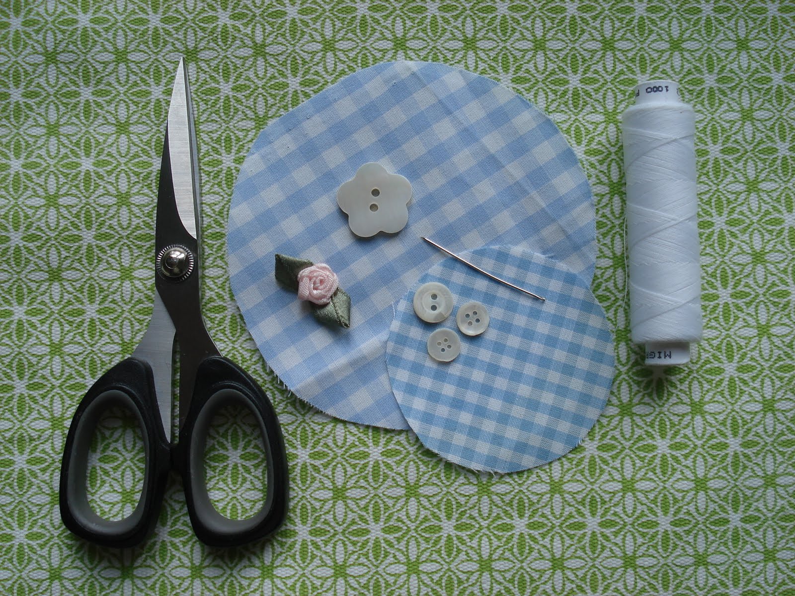 freulein nehme: Nadel & Faden, Schere, Stoff (resten), Knopf, Kreisvorlage (z.B. 6cm & 10cm) und ein bitzeli Zeit.
