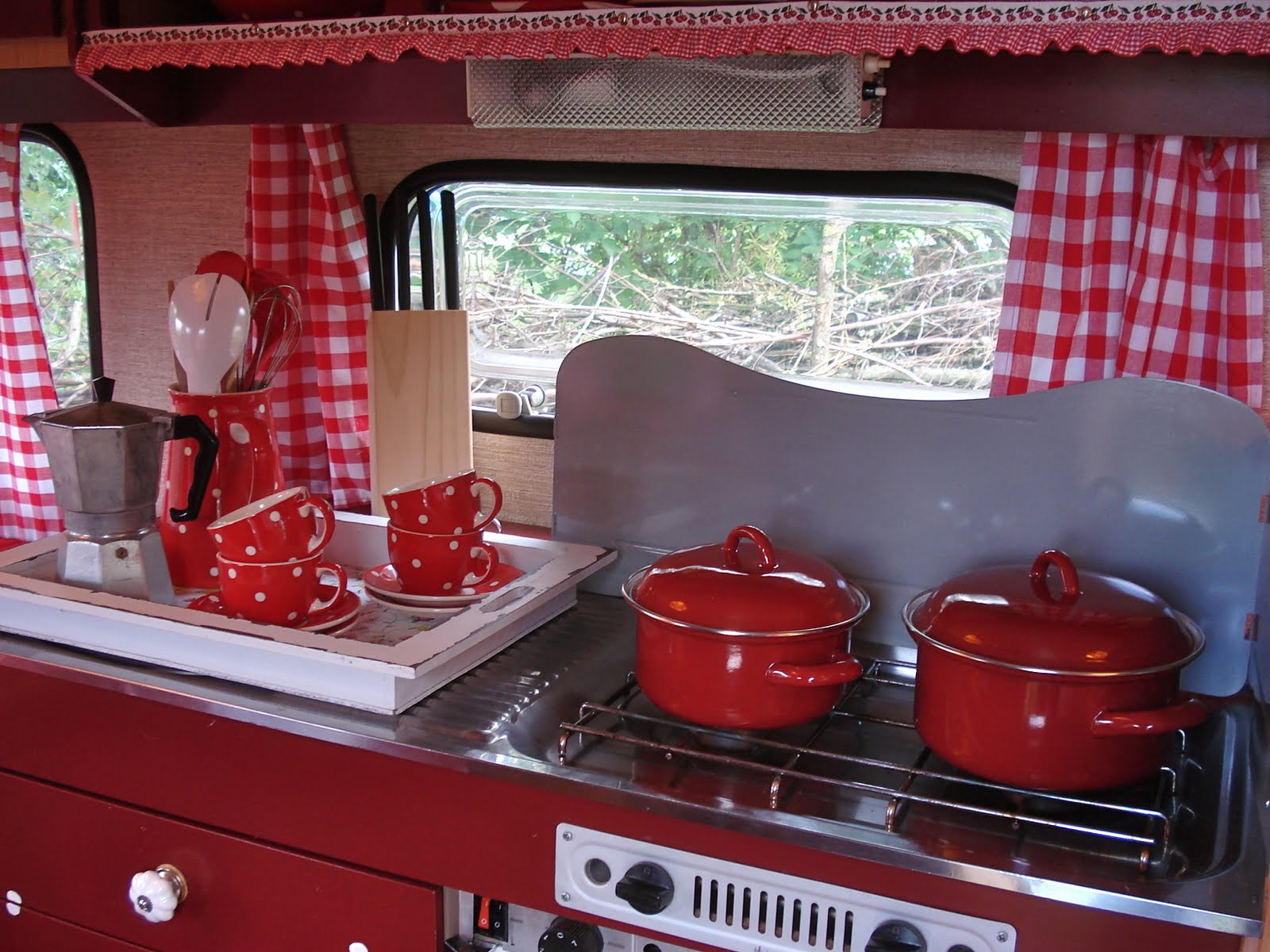 Wir wohnten sechs Tage im Stippel-Caravan, Frühstück gab's aus Pünktlischalen & Co. und geschlafen haben wir in rot-weisser Bettwäsche.