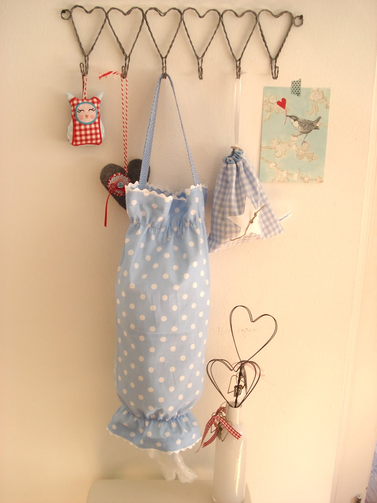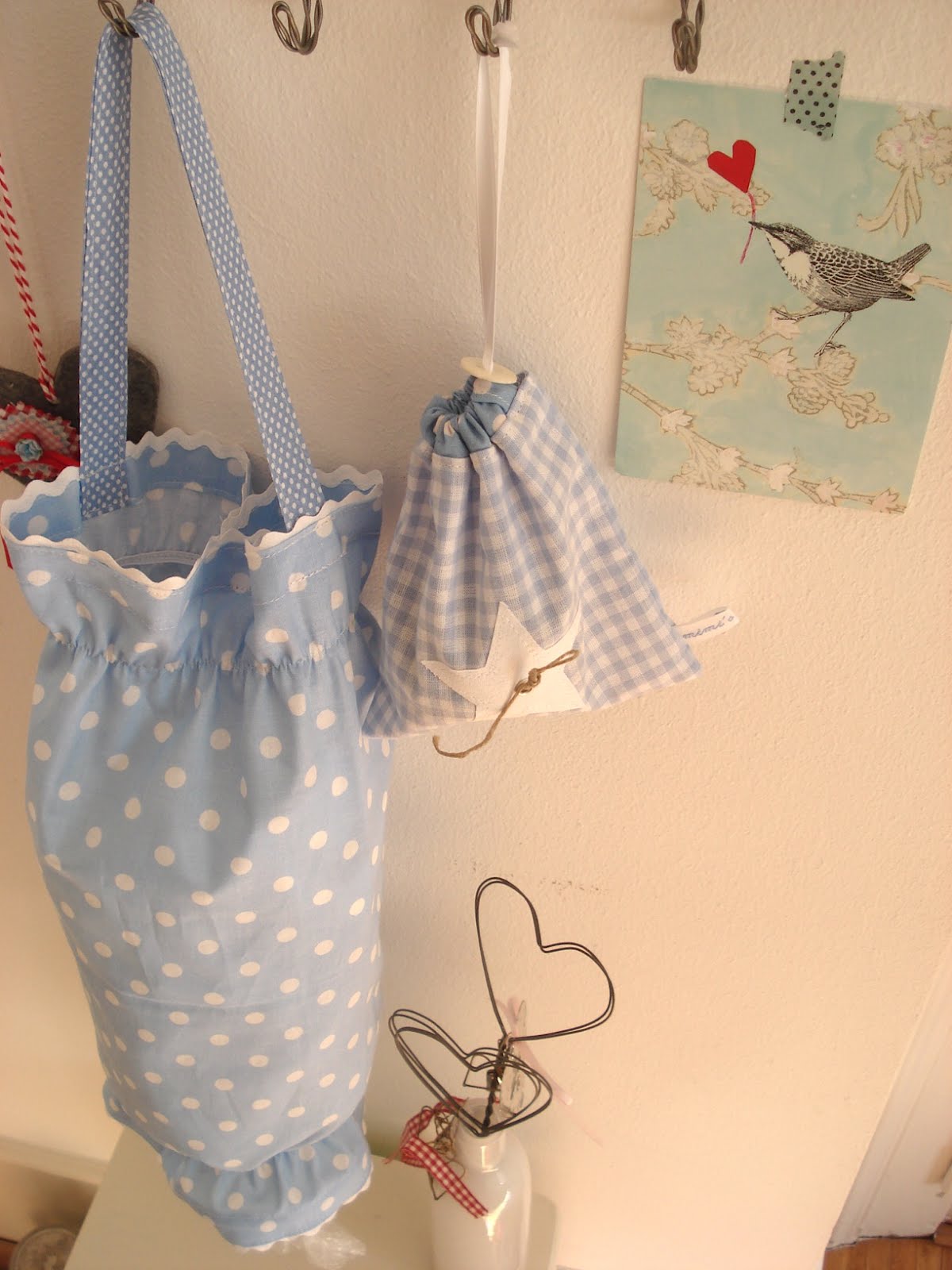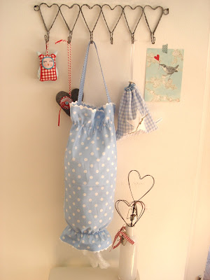Schon lange habe ich einen Stoffbeutel, der an der Innenseite des Küchenschrankes hängt und oben und unten eine Öffnung hat, in den ich Plastiktüten fülle, die später noch gebraucht werden können ...