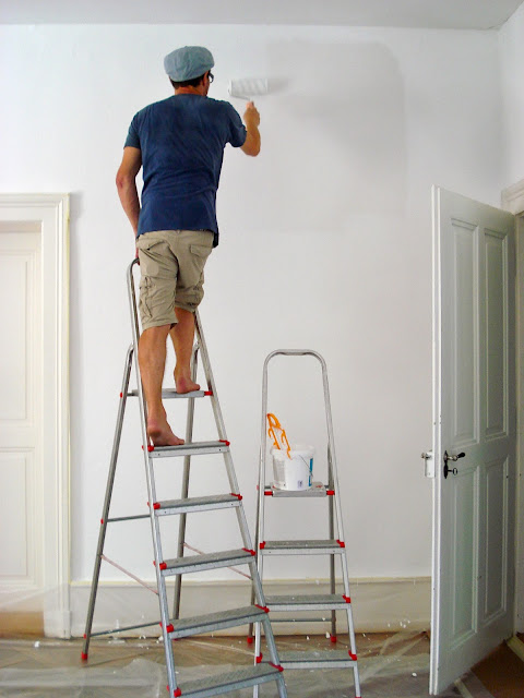Wir waren fleissig in den vergangenen zwei Tagen ..... zuerst alles abgeklebt, Ecken & Kanten gepinselt und dann gerollt & gerollt.