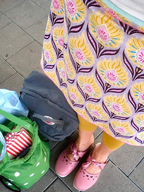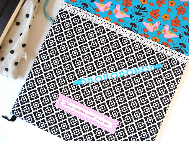 Vögelchenstoff von hier (war letztes Stück) & Blumenstoff von hier (schon gut gelagert)