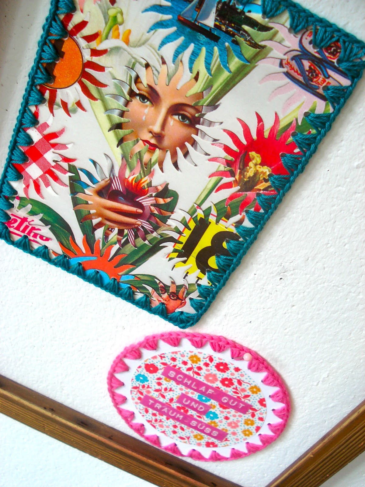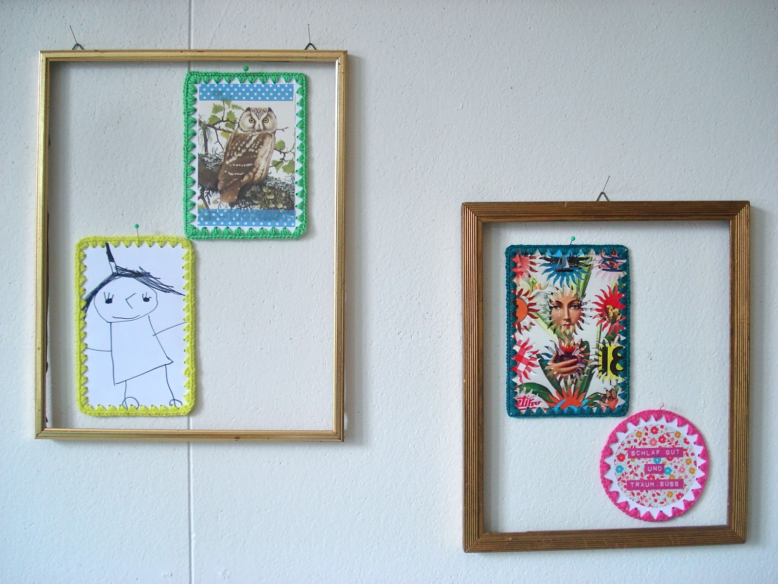 So lassen sich ganz viele bunte Grüsse gestalten, bei denen auch Kinder fleissig mithelfen können, die jüngeren gestalten kleine Kunstwerke und wer schon feste Maschen häkeln kann, kann zur Häkelnadel greifen.