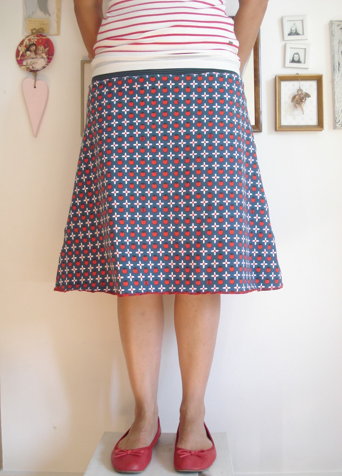 Bei so viel Sonnenschein & Co. werden nur noch Röckli getragen .... ein neues & schnelles Jersey-Röckli habe ich mir aus dem witzigen "Apple Snowwhite" genäht.
