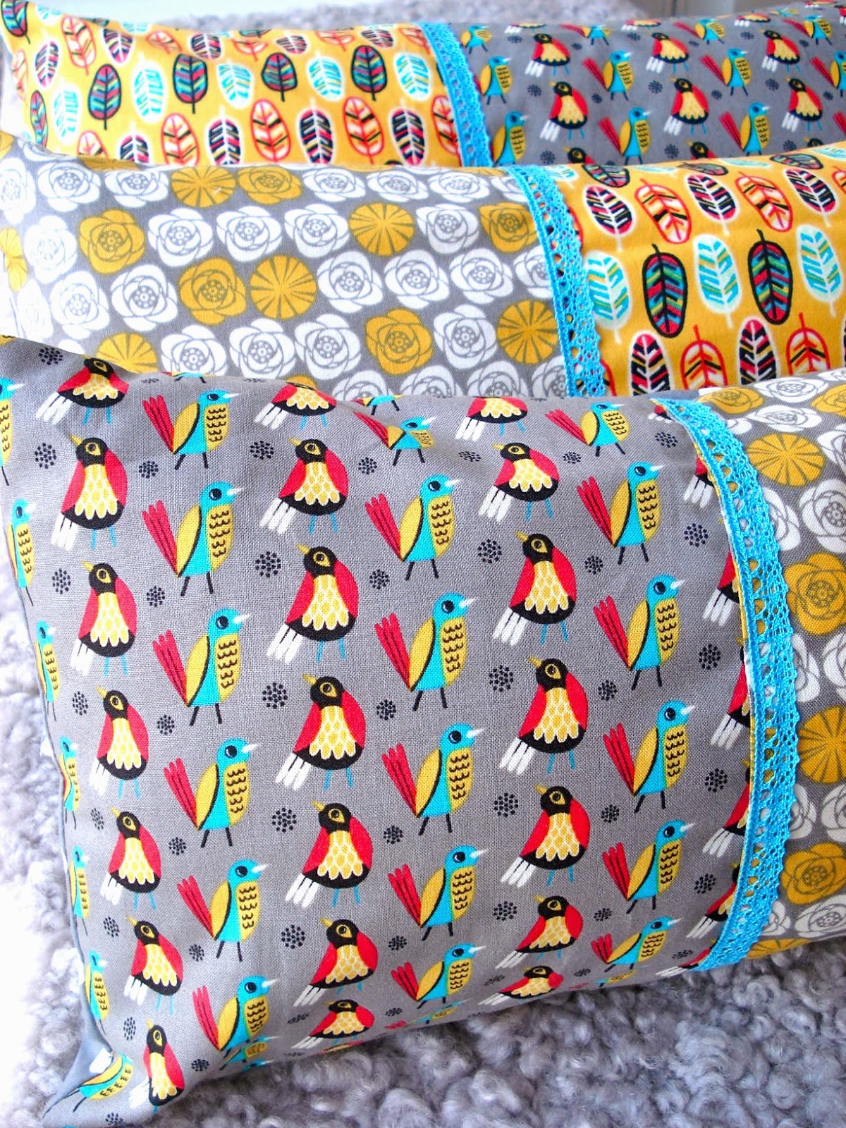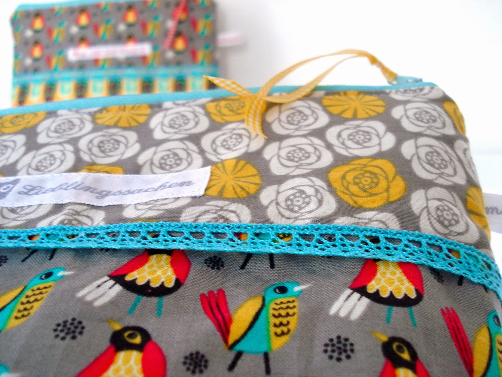 Natürlich gibt es noch einige Meter mehr von den Stoffen "Birds of feather" und diese, wie auch die Täschchen und Kissen, sind ab sofort im Lädeli erhältlich oder können per mail bestellt werden.