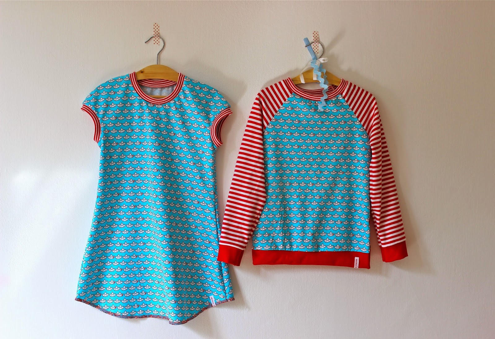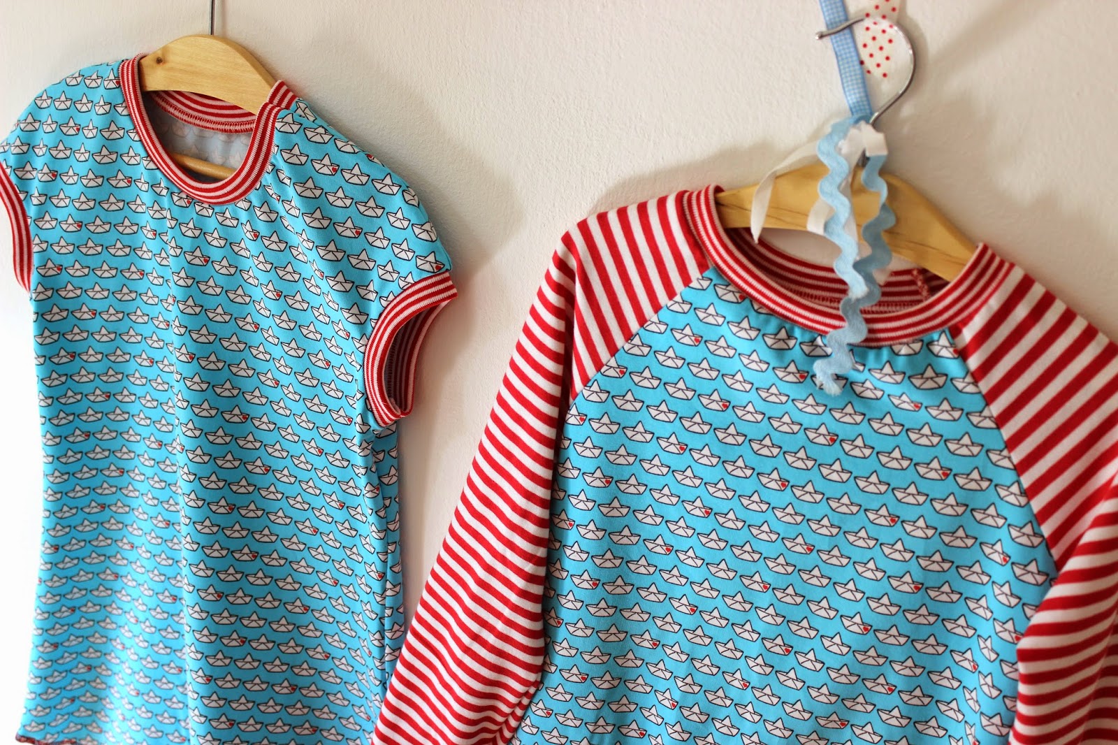 Heute habe ich eine Amelie und ein Zoé-Shirt aus dem Loveboat-Jersey in der gleichen Grösse genäht, die hoffentlich schon bald gemeinsam oder auch einzeln eine Seefahrt machen werden.