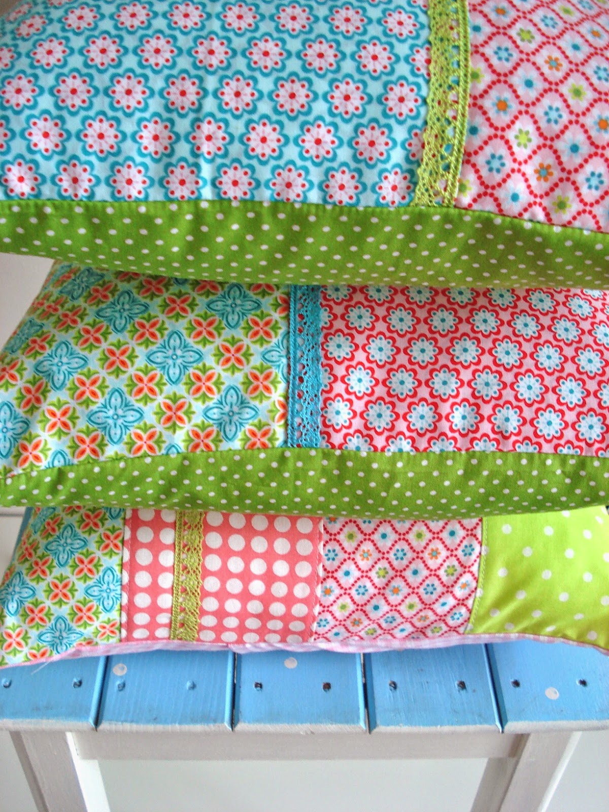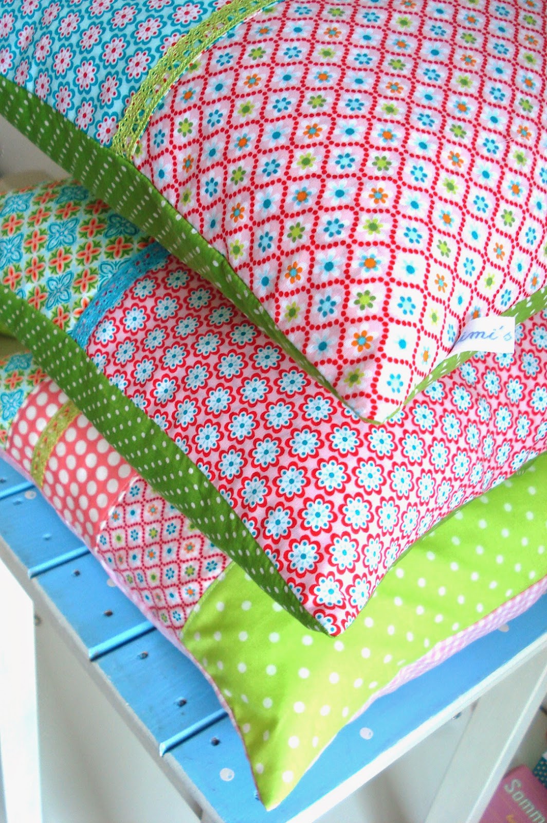 Den verregneten Sonntag-Nachmittag habe ich damit verbracht, die einen LieblingsSachen (oder einfach "Julia") vom letzten Post zu schneiden, kombinieren, schieben, neu zu legen und dann zusammen zu nähen und mit ein wenig "Spitze & Zacke" zu verzieren .... so sind ganz viele neue Kissen entstanden, die ich heute dann gefüllt & geknipst habe.