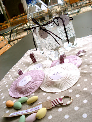 P.S. "Love is in the air" hab ich hier machen lassen (klappt bestens mit dem Versand, liebe SchweizerInnen) und das Spitzenklebband auf den Flaschen ist von der Baumhausfee.