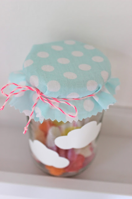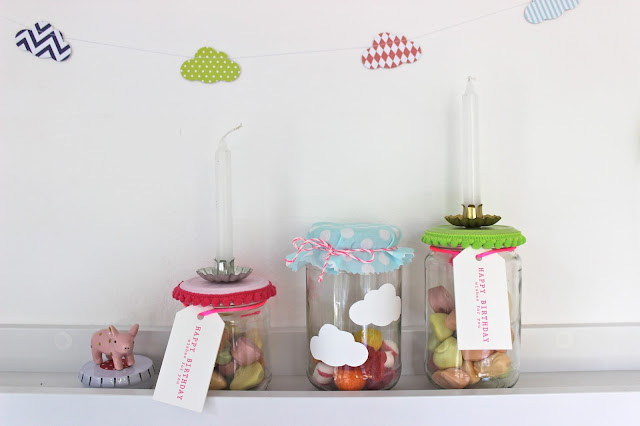 Kerzengläsli & Wolken-Girlande gibt es hier.