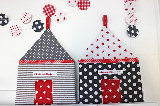 In den letzten Tagen habe ich Häuschen gebaut, .... äähm genäht, kleine & grosse. Die kleinen Häuschen sind einfach so zum Dekorieren & Aufhängen und die grossen Häuschen sind auch zum Aufhängen, aber bei diesen ist die Frontseite auch gleich ein Fach, das mit einem kleinen Gruss, Gutschein oder einem täglichen Adventskalender-Gschänkli (statt 24 Päckli) gefüllt werden kann.