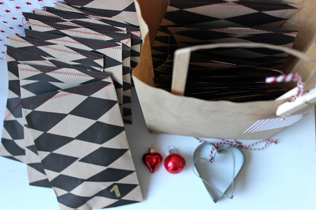 In diesem Jahr habe ich sie statt mit Kerzen mit zwei Schoggi-Samichläusen oder 24 süssen Herzli gefüllt, also ein kleiner Gruss für den 6. Dezember oder einen kleinen Adventskalender "to go".